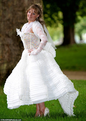 This is a balloon wedding dress design ideas, the design of this white dress looks funny, cute and unique because it is made of a series of balloon neatly into a beautiful wedding dress, if worn look beautiful and elegant, with no thought of a balloon we present an outstanding work.